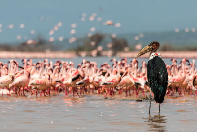 The few quantity of flamingos is accompanied by other birdlife – pelicans, cormorants, kingfishers, ostriches, storks as well as herons and eagles. The scene here is bountiful, busy and full of color.